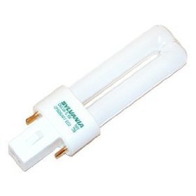 5-watt T4 twin tube compact fluorescent bulb with bi-pin base, 2700K color temperature and color-rendering index of 82. Average rated life of 10000 hours. Line voltage. This product, or component of this product, contains mercury. Do not place in trash. Please recycle or dispose of in a certified hazardous waste facility. DL # 17214.