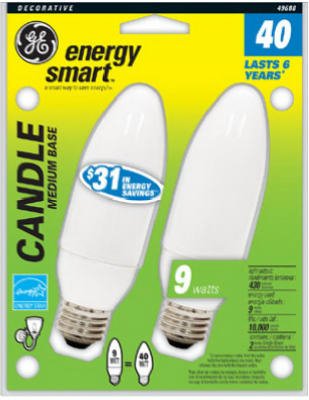 "G E LIGHTING" COMPACT FLUORESCENT BULBLamp type : Compact Fluorescent - Self-BallastedBulb: B13Base: Medium Screw (E26)ENERGY STARr Qualified: YesWattage: 9Rated Life: 10000 hrs