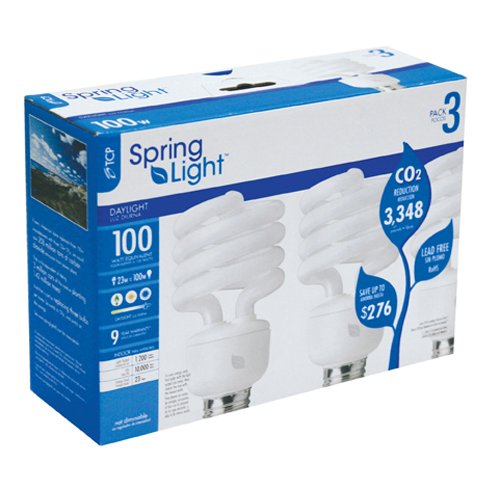 23 watt 120 volt Medium Screw (E26) Base 5,000K SpringLamp Twist / Spiral Compact Fluorescent TCP Light Bulb 3 Pack