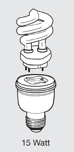Description: TCP 16015L 15W Two Piece Springlamp Compact Fluorescent Light Bulb - 15W 2PC SPRING HPF TCX - Long life compact fluorescent light bulb - Use anywhere a standard incandescent is used - Lasts 7 years, based on 4 hours use per day - Replace less often, ideal for hard to reach places - 10,000 hour average rated life - Medium base - 50,000 hour average rated ballast life - Ideal for table and floor lamps, ceiling fixtures and closet lights - Quick run up time - Instant start, flicker free - Lower maintenance and labor costs for lamp replacements
